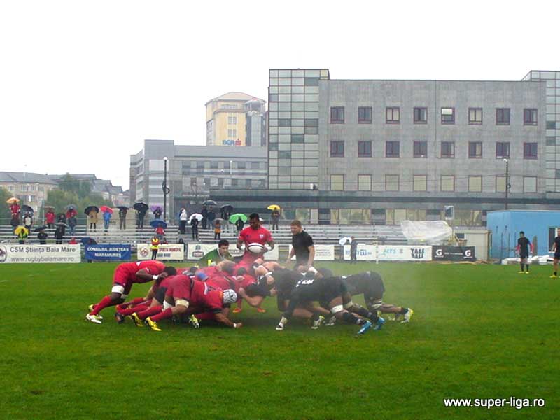 În primele 20 de minute de joc, meciul a fost unul de uzură dus între cele două linii de 22. Doar lovitura de penalitate irosită de decarul militarilor, Dănuţ Dumbravă în minutul 3, a fost cea care a dat emoţii celor circa 1.500 de suporteri decişi, indiferent de frig sau ploaie, să fie alături de proprii favoriţi. Liderul marcatorilor SuperLigii de Rugby, neo-zeelandezul de 27 de ani Samoa Luke, avea să deschidă scorul în minutul 21 ca urmare a transformării unei lovituri de penalitate. Patru minute mai tîrziu, acelaşi Dănuţ Dumbravă nu mai ratează ţinta, egalînd la trei situaţia pe tabela de marcaj. Cu patru minute înainte de finalul primului mitan, fundaşul zimbrilor, Luke Samoa, recidivează, stabilind scorul la pauză, 6-3. Mult mai combativi, zimbrii reuşesc în minutul 47 să mărească ecartul la zece puncte, graţie flankerului Sean Morrell, autor al primului eseu, respectiv Luke Samoa. Cu circa 20 de minute înainte de final acelaşi Luke Samoa reuşeşte a treia lovitură de penalitate, urcînd scorul la 16-3. Intuind un eşec umilitor, militarii revin în joc izbutind în minutul 65 prin stîlpul Silviu Vasiliu să culce balonul în terenul de ţintă al zimbrilor. Noul intrat Andrei Filip transformă şi scorul devine 16-10. Pînă la final ambele formaţii îşi vor mai trece în cont cîte trei puncte, Luke Samoa minutul 68 (19-10), respectiv Andrei Filip minutul 78 (19-13). Scorul putea lua proporţii odată cu scurgerea celor cinci minute de prelungire, dacă Luke Samoa (cel ce avea să fie declarat omul meciului) nu irosea cea de-a cincea lovitură de penalitate, iar fijianul Ratu Maravunawasawasa nu irosea o lovitură de picior căzută. Însă şi aşa victoria zimbrilor a fost una fără dubii. Vineri, 4 decembrie, ora 13.00, în finala pentru locurile 3-4, Steaua Bucureşti o va întîlni pe CSM Bucureşti, în timp ce sîmbătă, 5 decembrie, de la aceiaşi oră, în premieră pentru Arena Zimbrilor din Baia Mare, CSM Ştiinţa va juca cu trofeul pe masă contra celor de la Timişoara Saracens RCM. • Arena Zimbrilor Baia Mare. Spectatori, aproximativ 1.500. • Arbitri: Cristian Şerban, Răzvan Vasiliu, Mădălin Gârbău (Bucureşti). Arbitrul nr. 4: Dragoş Preda (Baia Mare). Arbitru video: Emanuel Gorodea (Iaşi). Observator FRR: George Bărgăunaş (Bucureşti). • CSM Ştiinţa Baia Mare: Luke Samoa, Alexandru Bucur, Sione Fakaosilea, John Leiataua, Ionuţ Botezatu, Ratu Maravunawasawasa, Bidzina Shamkaradze, Constantin Pristăviţă, Florin Bărdaşu, Paul Rusu, Marius Dănilă, Dumani Mtya, Kuselo Moyake, Sean Morrell, Constantin Ene – cpt. Rezerve: Mihai Dico, Florin Gorun, Waisea Nailago, Răzvan Ailenei, Alexandru Pălii, Michael Wiringi, Cristian Diniş Vârtic, Johannes Van Heerden. Antrenori: Eugen Apjok, Vasile Lucaci. • Steaua Bucureşti: Sabin Strătilă, Petelo Tupou, Robert Dascălu, Claudiu Ioniţă, Ionuţ Dumitru, Dănuţ Dumbravă, Nemia Ranuku, Mădălin Baraulea, Cristi Cornei, Silviu Vasiliu, Bogdan Doroftei, Alexandru Grigore, Malakai Ravulo, Viorel Lucaci – cpt., Eseria Vueti. Rezerve: Costin Neacşu, Andrei Florescu, Manu Vainanuma, Nicholas Moa, Grigoraş Diaconescu, Andrei Filip, Ionuţ Niacşu, Sergiu Buzea. Antrenori: George Sava, Marcel Mihalache.