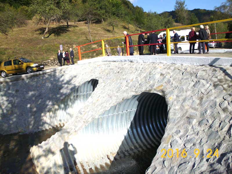 Construcţia acestui pod a fost începută de fostul primar Nelu Şovre, lucrarea fiind finalizată de noua conducere a comunei. La inaugurare, au fost de faţă: primarul Vasile Giurgiu, viceprimarul Ionel Gherghel, consilierul Ioan Gherghel, consilieri localui şi mulţi săteni. Podul a fost sfinţit de PSa Vasile Bizău, episcop al Episcopiei Greco-Catolice Unită cu Roma din Maramureş: “Se sfinţeşte acest pod cu apă sfinţită, în numele Tatălui, al Fiului şi Sfîntului Duh”. Au fost de faţă şi preotul protopop greco-catolic Mihnea, de la Copalnic Mănăştur. Primarul Vasile Giurgiu a spus, printre altele: “Podul acesta este important, face legătura între cele două părţi ale satului”.