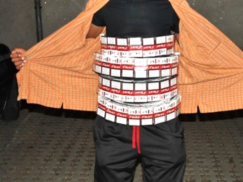 Poliţiştii de frontieră maramureşeni au depistat cinci persoane care transportau, cu un autoturism şi ascunse pe corp, peste 4.300 de pachete cu ţigări, de pro­venienţă ucraineană.
