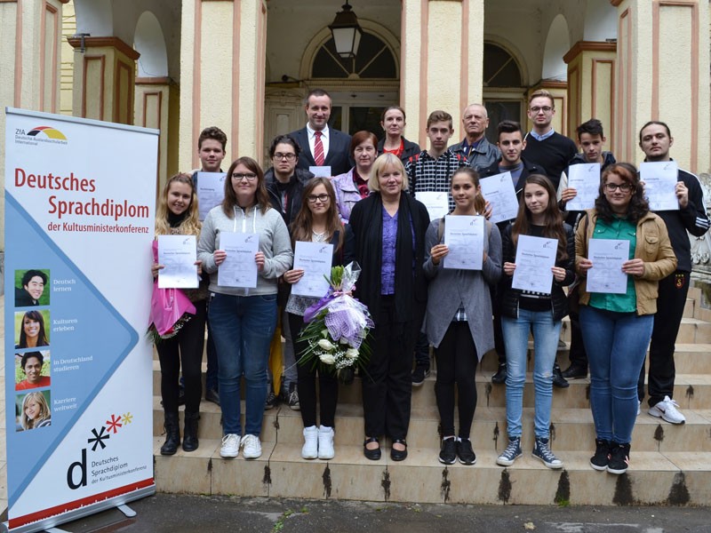 Luni, la orele amiezii, într-o atmosferă de sărbătoare, a avut loc în sala de şedinţe a primăriei din Vişeu de Sus (plină de elevi, părinţi şi cadre didactice) înmânarea diplomelor de limbă germană B1 şi A2, care permit intrarea într-o şcoală profesională, şcoală de meserii sau solicitarea unui loc de muncă în Germania fără un alt examen de limbă. Absolvenţii Liceului Tehnologic nr. 1 de la profilul Turism şi Servicii secţia germană pot găsi un loc de muncă mult mai uşor în domeniul specializării lor, cunoscând foarte bine limba germană. Unele diplome permit absolvenţilor de liceu înscrierea la universităţi în Germania, recunoscut fiind examenul de limbă. Certificatele au fost înmânate de către doamna Birgit Soldenwagner, ataşat cultural al Germaniei, responsabilă pentru şcolile în limba germană din V şi N României.