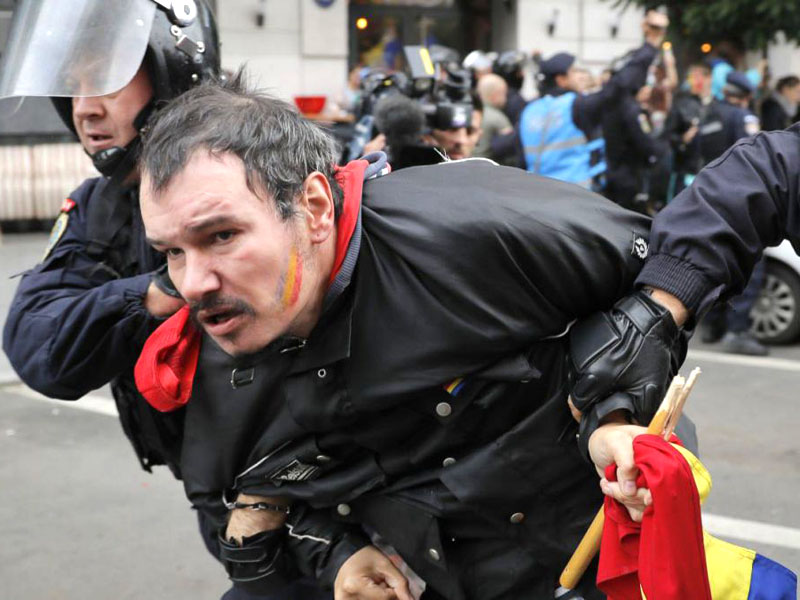 La intrarea noastră în Piaţa Victoria, am observat pe partea dreaptă un Ţarc mare în care erau câteva grupuri din coloanele din faţă. Menţionez că eu făceam parte din al patrulea grup care trebuia să intre. După mine mai urmau încă două. Când am văzut Ţarcul, i-am spus colegului care era lângă mine şi avea o portavoce: NU intrăm în Ţarc, că NU sîntem oi, suntem oameni liberi. Atunci el a strigat ce am zis eu. În momentul acela, toţi au strigat la fel. Dar, din păcate, răul se produsese. George Simion, cu încă câteva persoane, au rupt, au forţat cordonul jandarmilor, vrând să se îndrepte spre Piaţa Universităţii în marş cu coloana lui, lucru care NU era trecut în program. Noi, trebuia să rămânem în Piaţa Victoriei, conform planului aprobat. Ce a urmat, ştie toată ţara, inclusiv Europa şi nu numai. După o mică consfătuire între noi, am hotărât să ne despărţim în grupuri de către 2-3 şi chiar 4 persoane şi să ne îndreptăm spre Piaţa Universităţii. Astfel, au pornit primele grupuri, jandarmii văzându-ne paşnici, ne-au întrebat ce facem, am spus, gata, noi am terminat, plecăm acasă. Aveam steagurile şi benerele strânse, aşa că ne-au lăsat în pace. De acolo toţi am plecat pe căi ocolite spre locul fixat, Piaţa Universităţii, unde ştiam cine ne aşteaptă: alţi jandarmi, un car al TvDg. Cu reporterii care luau interviuri. Eu am refuzat, nu-mi place publicitatea gratuită.