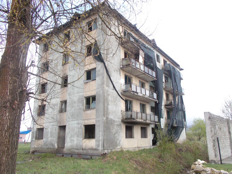 La ieşirea din Tg. Lăpuş spre Dămăcuşeni, se află un bloc de locuinţe altădată locuit, acum lăsat să se ruineze. Din vîrful clădirii şi pînă la pămînt,atîrnă o pînză mare, neagră, deci blocul este „în doliu”. Clădirea a aparţinut cîndva de Primăria oraşului, acolo erau cazaţi în apartamente şi garsoniere muncitori celibatari sau familişti, ce lucrau la fosta Fabrică de prelucrare a lemnului. Apoi, blocul cu nr. 102 a fost cumpărat de SC AGECOM Baia Mare, în ideea să fie reabilitat. Locatarii au fost evacuaţi şi lăsaţi să se descurce singuri, dar nu s-a mai întreprins nimic constructiv, edificiul, de altfel durabil şi construit din cărămidă şi beton, este lăsat să se deterioreze. Acum arată înfiorător, cu geamuri şi uşi sparte, pereţi ruinaţi, iar mizeria tronează peste tot, focar de infecţie. Este necesar ca acest bloc să fie reabilitat, mulţi cetăţeni ar avea deasupra capului un acoperiş. (A.P.)