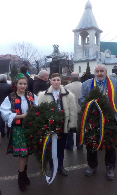 La monumentul lui Ştefan cel Mare din centrul oraşului, a avut loc ceremonia de depunere de coroane de flori, de către Consulatul României la Slatina, Prefectura judeţului Maramureş (reprezentată de subprefectul Alexandru Cosma), Consiliul Judeţean Maramureş, Liceul “Mihai Eminescu” Slatina, Fundaţia Academia Daco-Română (preşedinte dr. Geo Stroe), Asociaţia Culturală Maramureşul din Slatina şi Asociaţia Boema OJT (preşedinte Mihai Cozma). A urmat o recepţie oferită de Excelenţa Sa, domnul consul Micola Gabriel, de la Consulatul României la Slatina, care, alături de distinsa sa soţie, au fost gazde perfecte. Recepţia a fost onorată de prezenţa Excelenţei Sale, domnul general Ghenadii Moskal, guvernatorul regiunii Transcarpatia, care a adresat felicitări părţii române cu ocazia zilei naţionale, exprimându-şi speranţa că relaţiile bilaterale vor trece peste impasul actual generat de legea învăţământului din Ucraina şi şi-a exprimat dorinţa de a vizita Maramureşul din stânga Tisei, în interesul consolidării relaţiilor între cele două maluri.