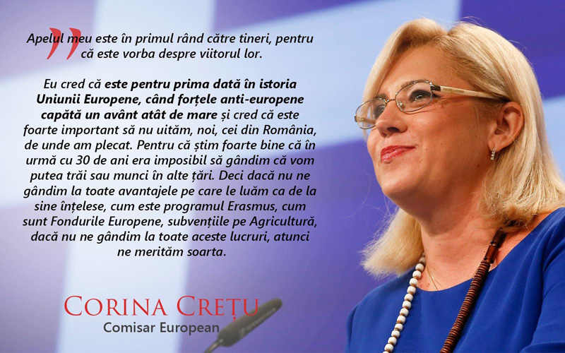 “Am ales să mă alătur echipei PRO România pentru că sunt convinsă că este cea mai bună soluţie pentru a valorifica mai inteligent, inclusiv din Parlamentul European, şansele pe care le avem ca membri ai Uniunii Europene”, a declarat comisarul Corina Creţu.