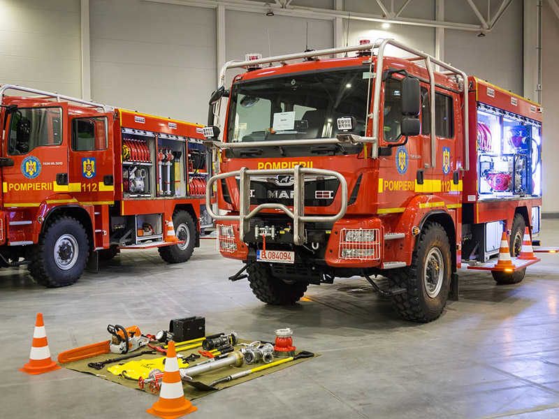 Autospecialele au fost distribuite în funcţie de suprafaţa fondului forestier, precum şi de cazuistica înregistrată la nivel naţional, către inspectoratele pentru situaţii de urgenţă din judeţele Alba, Argeş, Arad, Bacău, Bihor, Bistriţa-Năsăud, Braşov, Sălaj, Cluj şi Maramureş.