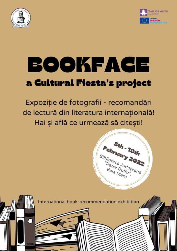 Mâine, 8 februarie, de la ora 10, în Salonul Artelor din cadrul Bibliotecii Județene „Petre Dulfu” din Baia Mare, va fi organizată în colaborare cu Asociația Team for Youth Baia Mare, o expoziție intitulată ”Bookface”, care conține fotografii ale participanților cu cartea preferată, precum și testimoniale ale acestora cu privire la cartea recomandată. Evenimentul se desfășoară în cadrul proiectului „Cultural fiesta”, fiind coordonat de voluntara spaniolă Elvira Garcia, din cadrul asociației mai-sus amintite. Expoziția poate fi vizitată în perioada 8 – 18 februarie 2022, la Salonul Artelor – Biblioteca Județeană „Petre Dulfu”. Pot participa în limita a 30% din capacitatea sălii numai persoanele vaccinate împotriva virusului SARS-CoV-2 și persoanele care prezintă rezultatul negativ al unui test RT-PCR pentru infecția cu virusul SARS-CoV-2, nu mai vechi de 72 de ore, cei care prezintă rezultatul negativ certificat al unui test antigen rapid sau persoanele care se află în perioada cuprinsă între a 15-a și a 180-a zi ulterioară confirmării infectării cu SARS-CoV-2.
