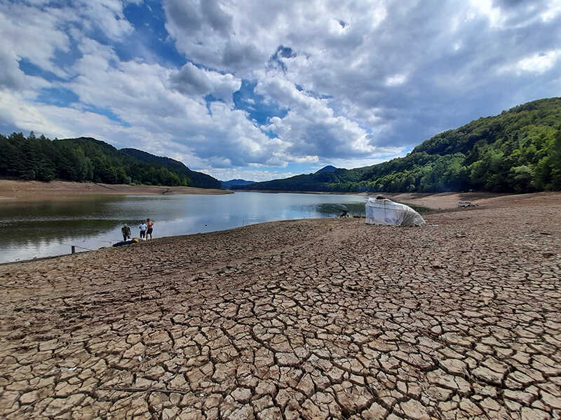 Pe termen lung, previziunile sunt și mai sumbre. Climatologul Roxana Bojariu spune că va exista o amplificare a fenomenelor întâlnite în ultimele veri – temperaturi ridicate, însoțite de o creștere a intensității precipitațiilor pe suprafețe mici. Agenția Națională Apele Române avertizează că rezerva de apă este în scădere. În cele 40 de lacuri de acumulare, aceasta este de 3,4 miliarde de mc de apă, la un nivel coeficient de umplere de 82 %. Estimările sunt că acesta va scădea până la 68% până la finalul lunii iulie”, scrie Oana Despa pentru Europa Liberă. În cazul nostru, al Maramureșului, bazinul hidrografic generos și așezarea în interiorul Carpaților trebuia să ne protejeze. La acest moment, acumularea Firiza, în plin proces de reparație a barajului, e în scădere, practic așa-zisa „coada Barajului” nu mai există, e uscat până la cantonul silvic. Cam o treime din acumulare nu-i! Pe maluri, joi-vineri, mai erau doar pescari plini de speranță. Mai puțină apă = mai mult pește? Pe apă plutesc PET-uri și gunoaie, lacul pute, în solul de pe fund se văd conserve, sticle, cioburi. Una dintre marile rezerve de apă ale Maramureșului e cam anulată. Așa că am mers să vedem și acumularea Runcu, ea trebuia să fie, înainte de toate, la origine, un lac ajutător pentru Firiza, dar și alimentare pentru satele de peste Gutâi, până la Sighet. O bârfă locală ne spune că, deși s-au alocat bani anul acesta, nu se prea lucrează, cei care lucraseră anii anteriori, după ani la rând în șomaj tehnic, s-au dus unde au văzut cu ochii. La barajul în sine, într-adevăr, se vede evoluție. Dar lucra un singur excavator. O singură persoană lucra, pe baraj, la momentul vizitei noastre, la orele amiezii. Nici cariera nu lucra. Altfel spus, termenul anunțat, de finalizare în acest an, e nerealist. Pe panoul de șantier, se vehiculează anul de finalizare 2023. Din 1987. Deci nu ne bazăm nici pe el. Maramureșul mai are o acumulare și un baraj „în lucru”, pe Seinel, unde lucrările au fost părăsite de ani buni.