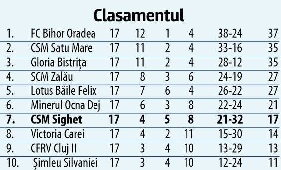 Maramureșenii au început însă mai bine confruntarea din penultima etapă a sezonului regulat și liderul s-a simțit amenințat în minutul 5, la voleul expediat de Dat și scurs pe lângă. Liderul însă nu a iertat formația antrenată de Adrian Iencsi la prima oportunitate și în minutul 13 Tiberiu Serediuc a deschis scorul din penalty. Bihorenii și-au dublat avantajul cu cinci minute înainte de pauză, Marius Hosu marcând în poarta adversă după o acțiune personală. La reluare, în minutul 50, Andrei Gal a majorat diferența cu o lovitură de cap, iar Tiberiu Serediuc a închis tabela în minutul 80 cu un șut de la 14 m.