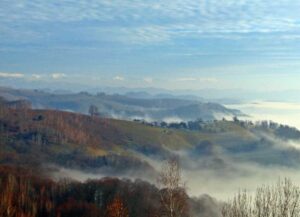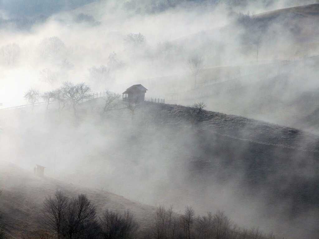Dacă ne permiteți o ironie, pe așa vreme nici măcar ei n-au cum să crească. Dar ajunși în vârf, dăm iar de ceață, doar că un drum de câmp… de deal mai precis, tot în Maramureș, ne duce deasupra cețurilor. Absolut impresionant! Din acest loc, ai la picioare o mare de cețuri ce se întinde spre Bistrița, acoperind satele în întregime. Apoi, ești în singurul loc de la noi de unde poți vedea aliniați Munții Țibleș cu cei ai Rodnei îndepărtați, în fundal. Un peisaj, cu tot cu cețurile de mai jos, demn de National Geographic, ba demn de Elveția. Nu poți pleca de acolo efectiv, atâta că cețurile încep să se împrăștie, se văd ici-colo mai o casă, mai o budă de lemn, ce se cer fotografiate.