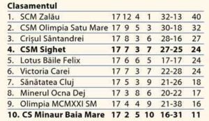 Rezultate etapa 17: Sănătatea Cluj-Napoca – CSM Sighetu Marmației 2-1; SCM Zalău – Olimpia MCMXXI Satu Mare 3-2; Minerul Ocna Dej – CSM Olimpia Satu Mare 0-5; Crișul Sântandrei – CS Minaur Baia Mare 3-0; CSM Victoria Carei – Lotus Băile Felix 1-1.
