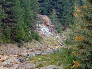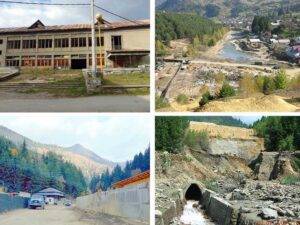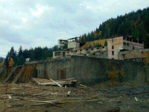 Totul e distrus, putred. Betoanele sunt în picioare doar. Și peste tot, urme de exploatări forestiere, de lemne, de gatere. Foste sau actuale. Era vorba că nu mai e ce tăia pe la Borșa… să fim serioși. Interesant, totuși, în urma tăierilor masive din anii 90, au avut loc mutații. Să vezi tu brazii la baza muntelui, crescuți înapoi și în vârf etaj de mesteacăn, crescut singur unde s-a golit, e ceva. De studiat chiar. Pe ruta aceea, pe Țâșla, de insiști, ajungi la Iazul Colbu, acum ecologizat. La inundațiile din 2008, iazul s-a rupt și puțin a lipsit să nu avem și noi un episod Certej 1971, pozele făcute acolo și atunci de semnatar stau drept dovadă. Pe cealaltă rută, pe pârâul Secu în sus, se urcă la fostele mine. Gura Băii etc. Și aici e dezastru. Râul e mort efectiv, de la vasarâș, dar și de la gunoaie, și acum se duc gunoaie de tot felul și se aruncă, pe mal sau în albie. Mai e o carieră în sus, guri de mină, se face stație de tratare. Un dezastru ecologic palpabil, viu încă, după 40 de ani. De parcă sus ar mai dudui minele.