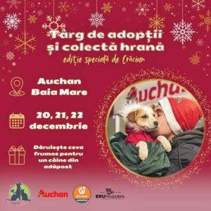 Ediție specială de Crăciun a târgului de adopții căței și colectă hrană înainte de sărbătorile de iarnă. Evenimentul va fi organizat la Auchan Baia Mare în zilele de 21, 22 și 23 decembrie.