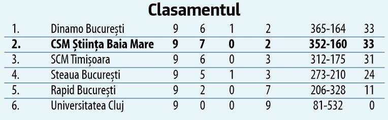 Victorie categorică în fieful celor de la Rapid București pentru CSM Știința Baia Mare. „Zimbrii” s-au impus cu 13-48 (6-17), însă în ciuda scorului concludent, aceștia au pierdut prima poziție în ierarhia intermediară a Ligii de Rugby. Vicecampioana joacă în ultima rundă a sezonului regulat acasă, cu Dinamo București, derby în care avem nevoie de succes pentru a disputa semifinala campionatului în fața propriilor suporteri.