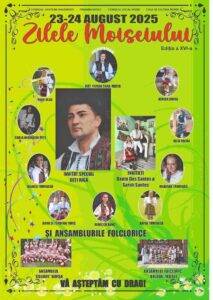 În zilele de 23 și 24 august, pe terenul de fotbal din Moisei – Livada, se va desfășura a 16-a ediție a Zilelor comunei Moisei. Invitați speciali: Deți Iuga, Banto Dos Santos & Sarah Santos. Participă: Ansamblul Folcloric „Balada” Moisei și Ansamblul „Colibri” Borșa, precum și artiștii locali: Maia Vlad, Carla Anamaria Mîți, Bianca Tomoiagă, Mariana Tomoiagă, Daria Tomoiagă, Denisa Durja, Iulia Hojda, Dana și Teodora Timiș, Rebecca Danci.