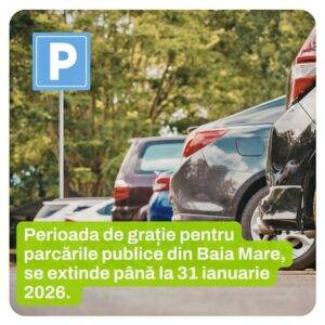 Primăria Baia Mare informează cetățenii că perioada de grație pentru parcările publice aflate în administrarea municipalității se prelungește până la data de 31 ianuarie 2026. Asta după ce termenul inițial fusese stabilit până la 15 ianuarie.