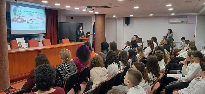La Biblioteca Județeană „Petre Dulfu”, Compartimentul Împrumut carte pentru copii, la ceas aniversar, Școala Gimnazială ,,Nicolae Iorga”, reprezentată de director prof. Codruța Cozma și dir. adj. prof. Beata Balint, a coordonat implementarea proiectului educativ județean ,,Eminesciana…”, ediția a IV-a, la inițiativa catedrei de limba și literatura română, reprezentată de prof. Codruța Cozma, prof. Elena Hendre, Laura Herman, prof. Corina Rus, prof. Ioana Naghi, prof. Adela Nechita și bibliotecar Titiana Tomoiagă.