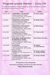 Spitalul Județean de Urgență Baia Mare demarează un nou ciclu al programului „Școala Mamei”, care se va desfășura în perioada 30 aprilie – 11 iunie 2026.