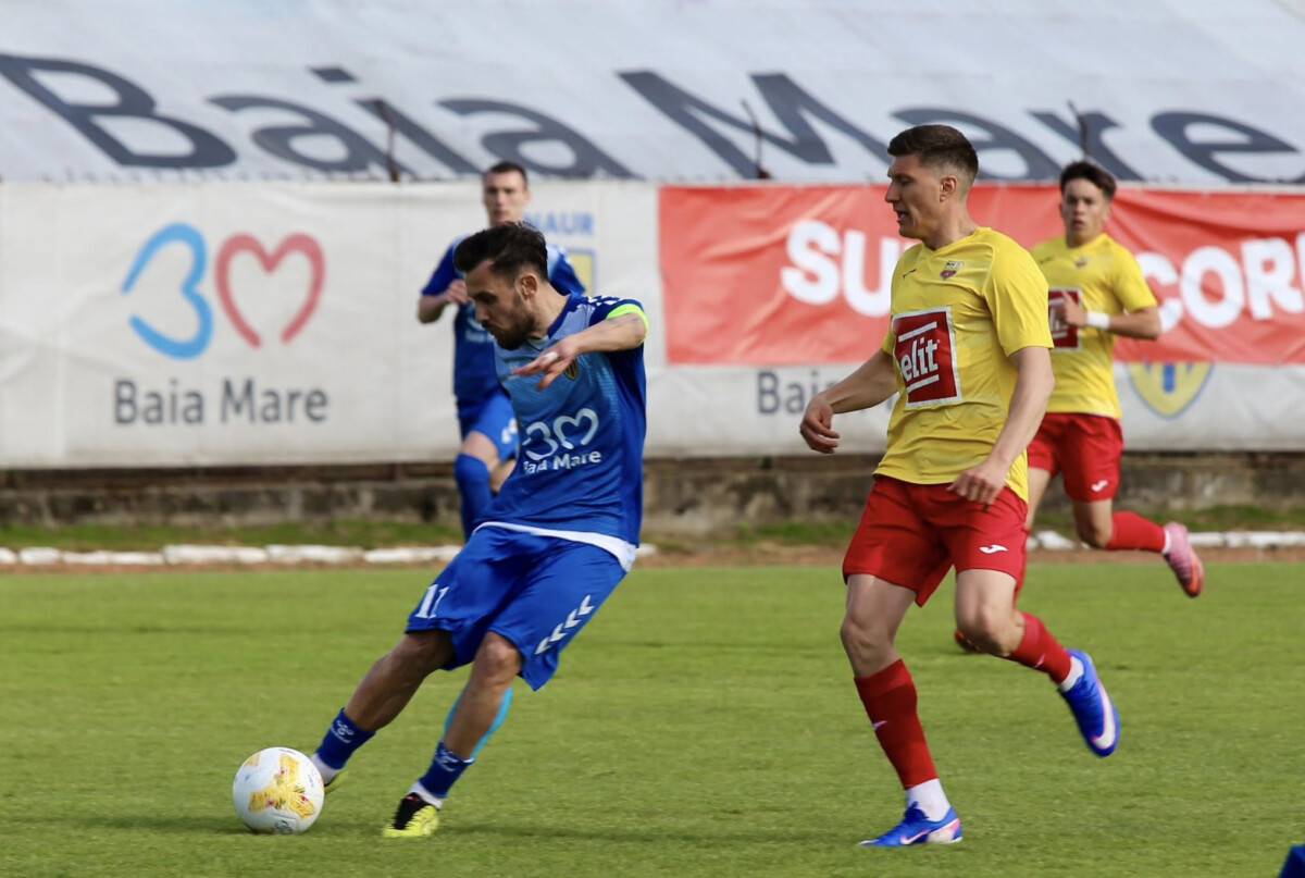 Băieții lui Alexandru Pelici au avut 2-0 în prima repriză, prin golurile semnate de Krausz și Bădici, însă Șăucă a relansat partida cu un gol marcat în finalul reprizei. Băimărenii controlează și partea secundă, 45 de minute în care vor marca alte două goluri, autori Mondragon și Stănescu, trei puncte care-i readuc pe băimăreni la cinci puncte față de locul 2 (de baraj) și cu patru etape la dispoziție pentru a recupera deficitul față de Sănătatea Cluj.