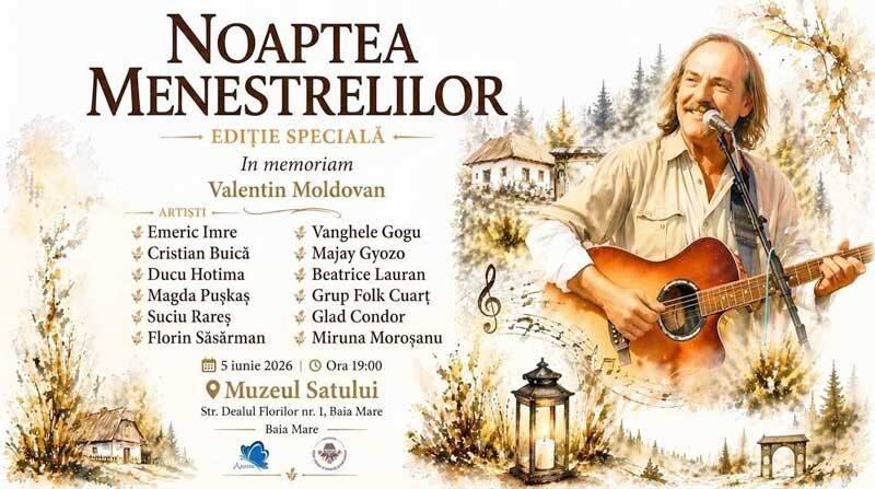 Spectacolul este dedicat memoriei artistului Valentin Moldovan. „Sunt oameni care nu pleacă niciodată cu adevărat, pentru că lasă în urmă mai mult decât amintiri – lasă emoție, lumină și cântec. Valentin Moldovan a fost unul dintre acei artiști care au știut să transforme simplitatea în frumusețe și trăirea în vers. Astăzi, absența lui lasă un gol tăcut, dar cântecele sale continuă să vorbească”, transmit organizatorii. Biletele pot fi achiziționate online de pe eventbook.ro, din librăriile rețelei Maralibris din Baia Mare și la numerele de telefon 0771 765 816 sau 0748 922 681.